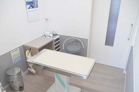 待合室と同じ、滑りにくい床材を用い、明るく清潔な診察室になっています。
